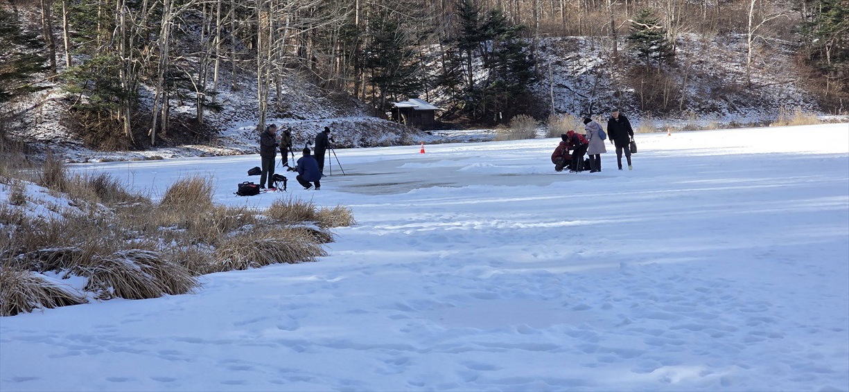 | 日蔭で薄暗いため撮影は陽が射し始める午後がオススメ チェーンスパイクは湖面を傷付けるので不可!! |